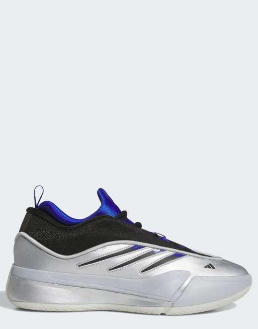 adidas performance Dame 9 shoes in silver metallic / core black / lucid blue