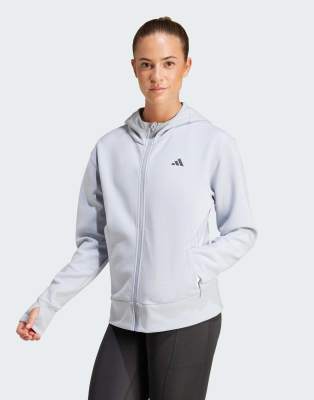 adidas performance Designed 4 Training full-zip hooded sweatshirt in halo silver