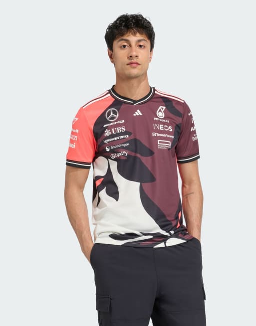 adidas performance Mercedes AMG Petronas Formula One Team driver jersey authentic summer pack in aurora ruby / turbo / off white