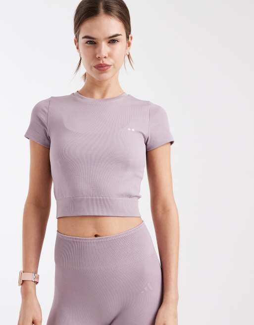 adidas Performance Workout essentials knit baby tee in preloved fig
