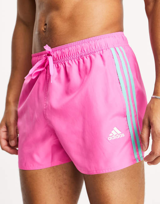 adidas Swim 3 stripe swim shorts in pink
