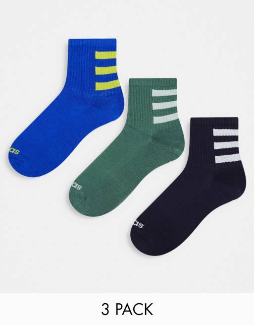 adidas Training 3 pack 3-stripe crew socks in khaki, navy and mid blue