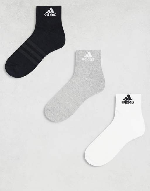 adidas Training 3 pack ankle socks in black, white and grey