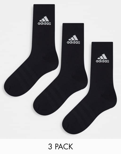 adidas Training 3 pack cushioned crew socks in black