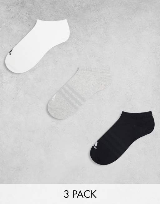 adidas Training 3 pack trainer socks in black, white and grey