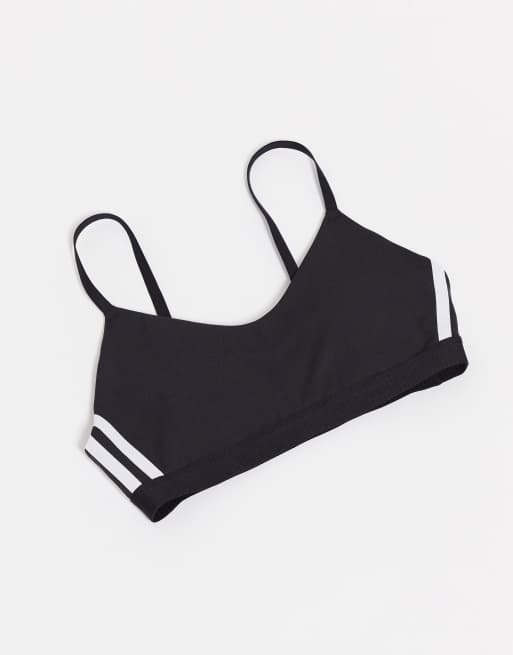 adidas Training 3 stripe strappy low support sports bra in black