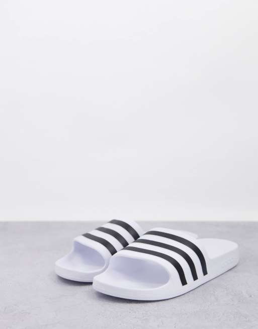 adidas Training Adilette sliders in white and black