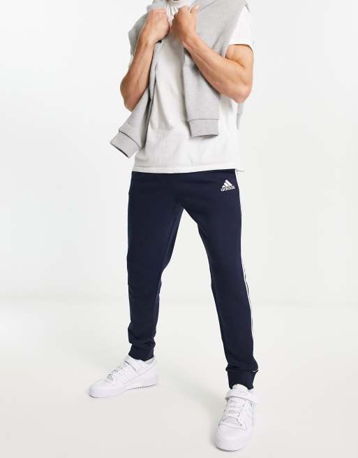 adidas Training Essential 3 stripe trackies in navy