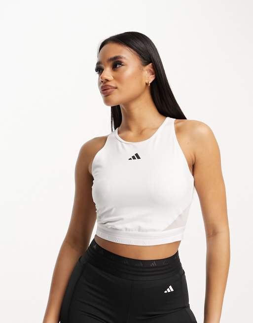 adidas Training Hyperglam 3 stripe crop top in white
