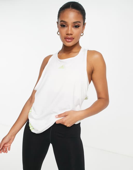 adidas Training Icons 3 Stripe tank top in white