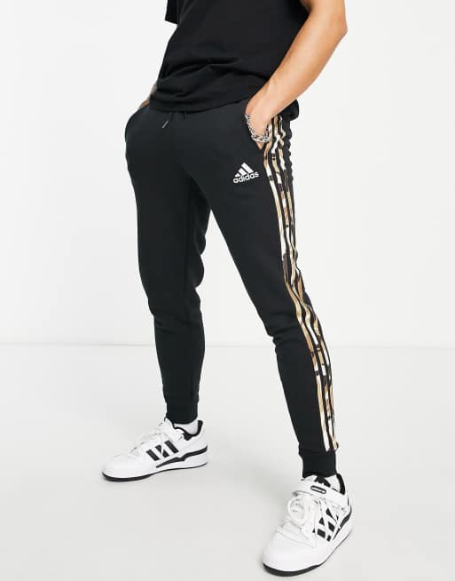adidas Training trackies with camo three stripes in black