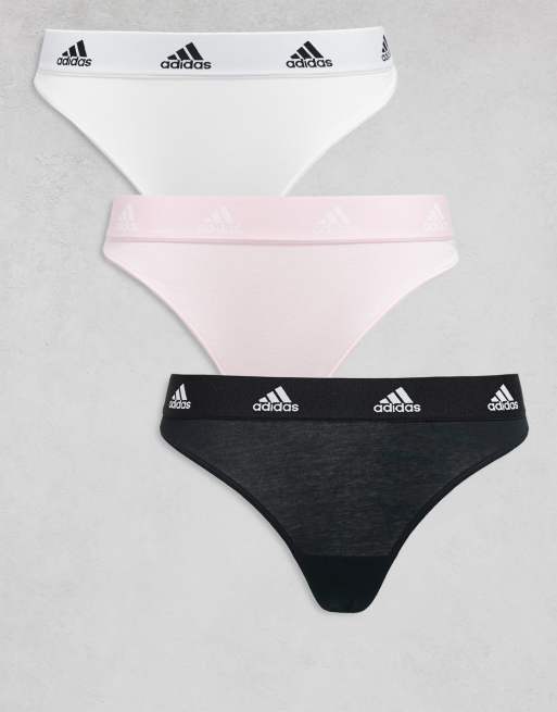 adidas 3 pack of active comfort cotton lingerie thongs in black, white and pink