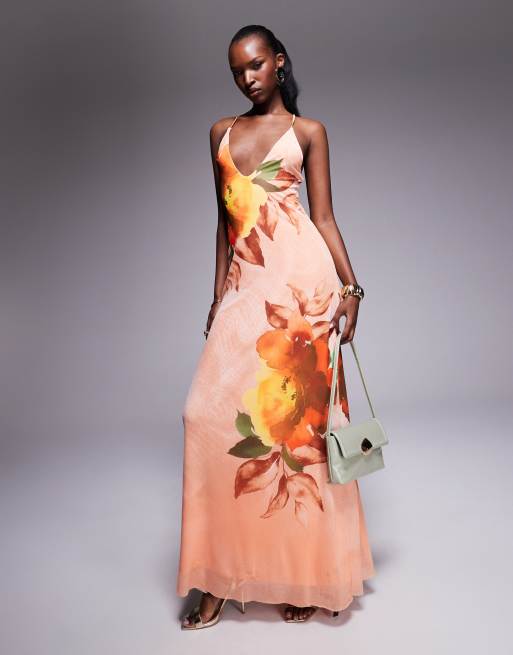 AFRM cowl neck power mesh midaxi dress in apricot bloom