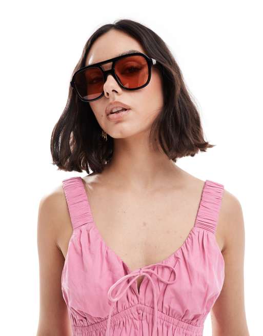 AIRE Whirlpool oversized aviator sunglasses with tan tint lens in black