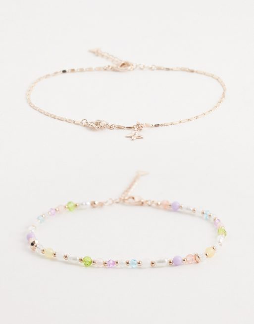 ALDO Edeissi layered charm anklet in multicolour and gold