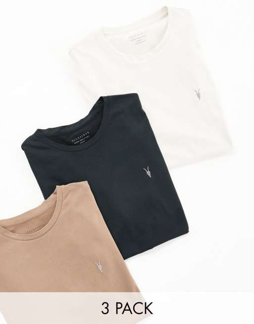 AllSaints Brace 3 pack brushed cotton t-shirts in multi