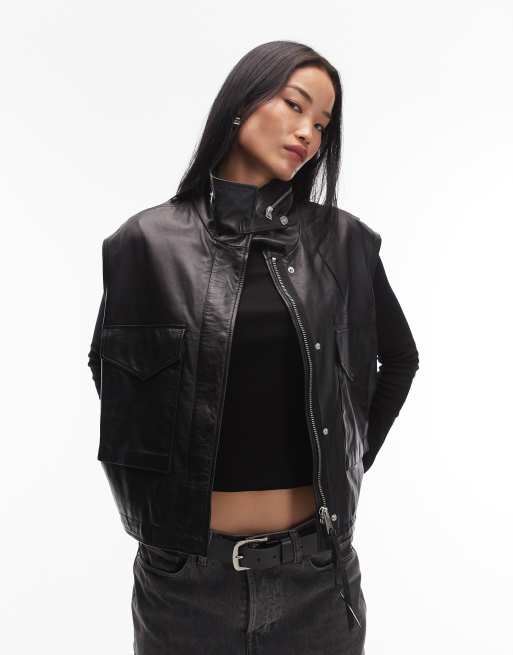 AllSaints Clay leather vest in black