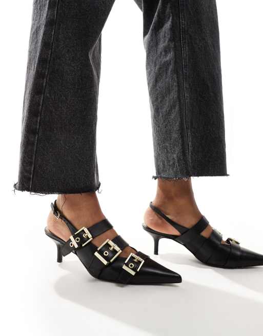 AllSaints Grace buckle slingback leather kitten heeled shoes in black