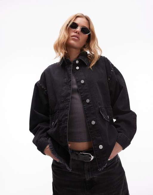 AllSaints Hetty stud shacket in black