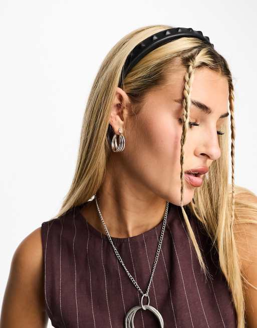 AllSaints leather covered studded headband in black