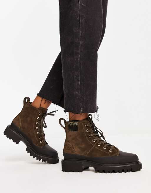 AllSaints Myla suede boots with lightweight rubber sole in khaki