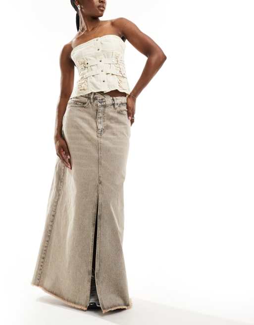 AllSaints Noir A-line denim maxi skirt in washed grey