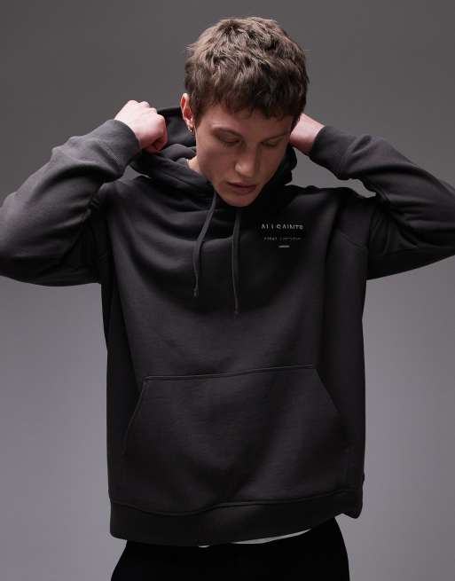 AllSaints Redact overhead hoodie in washed black