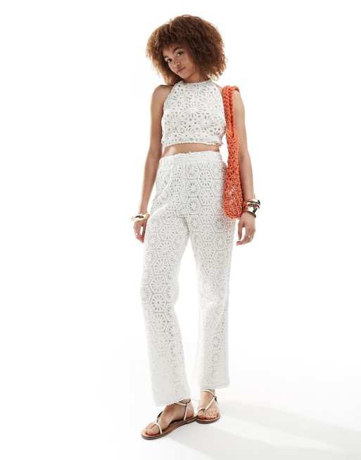 Amy Lynn crochet halter top & pants set in white
