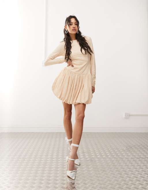 Amy Lynn scoop back all over lace mini dress with bubble hem in milk