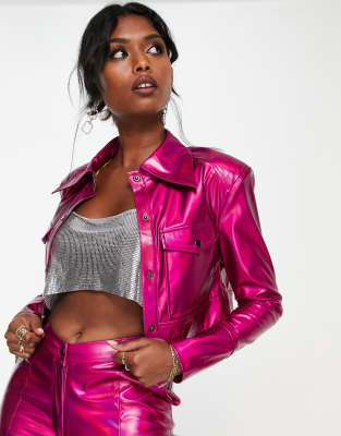 Annorlunda holographic faux leather wide shoulder jacket in grape (part of a set)