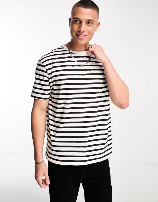 Another Influence drop shoulder stripe t-shirt in white & black