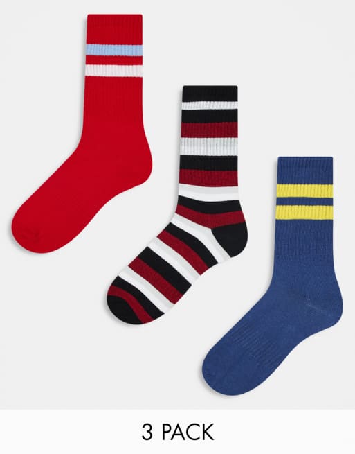 Another Influence ribbed multipack of 3 striped socks in red