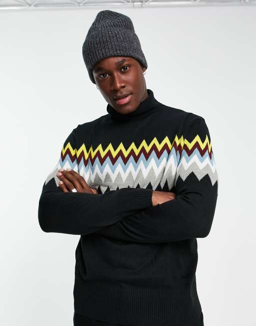 Another Influence zig zag roll neck jumper in black