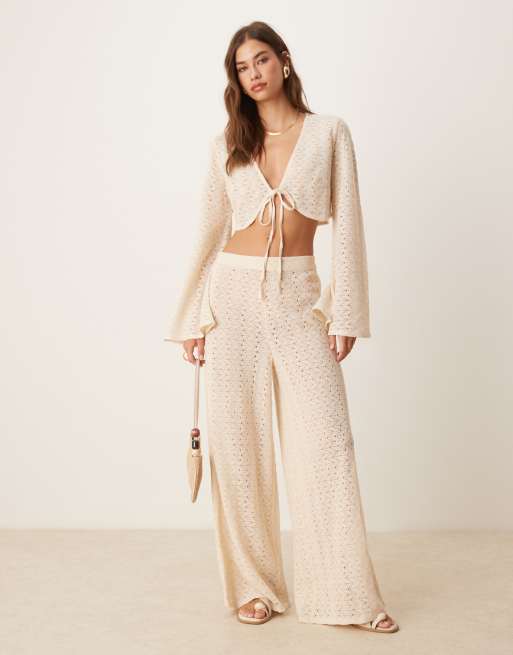 Aray crochet beach pants in beige (Part of a set)