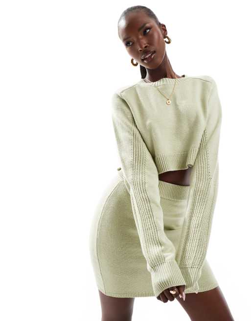Aria Cove knit rib jumper in sage green (part of a set)