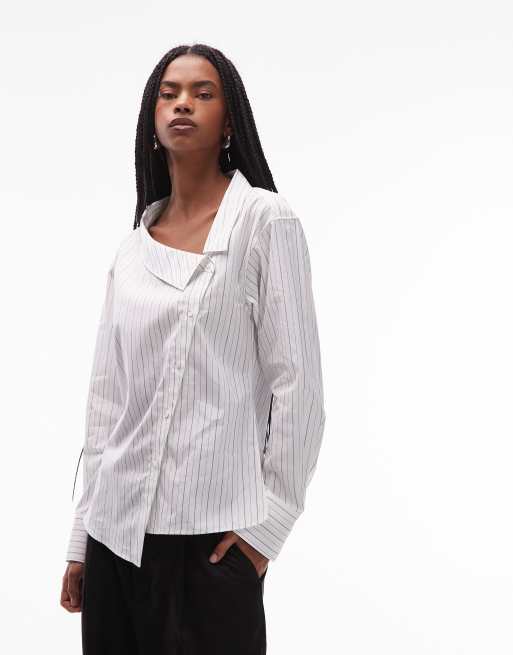 ARKET asymmetric wrap blouse with foldover collar in off white