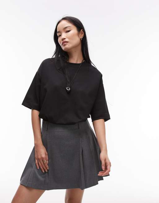 ARKET cotton rich stretch interlock long line short sleeve t-shirt in black