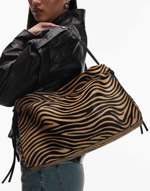 ARKET hair on real leather shoulder bag with zebra print in brown