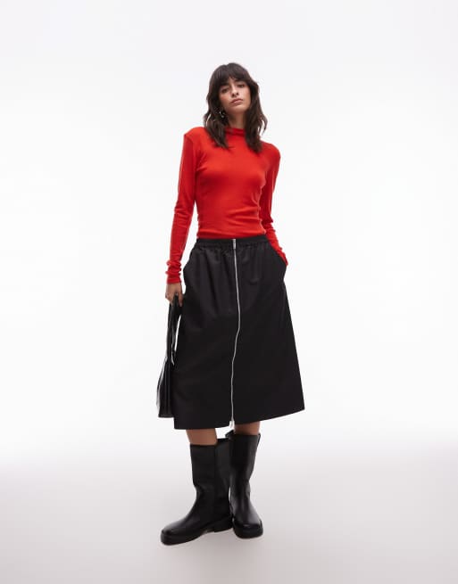 ARKET nylon zip through midi skirt in black