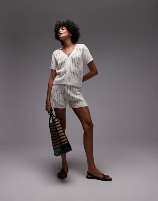ARKET paper knitted beach shirt and shorts set in off white
