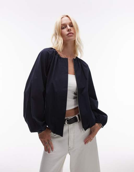 ARKET pure cotton volume jacket with toggle bubble hem in navy blue
