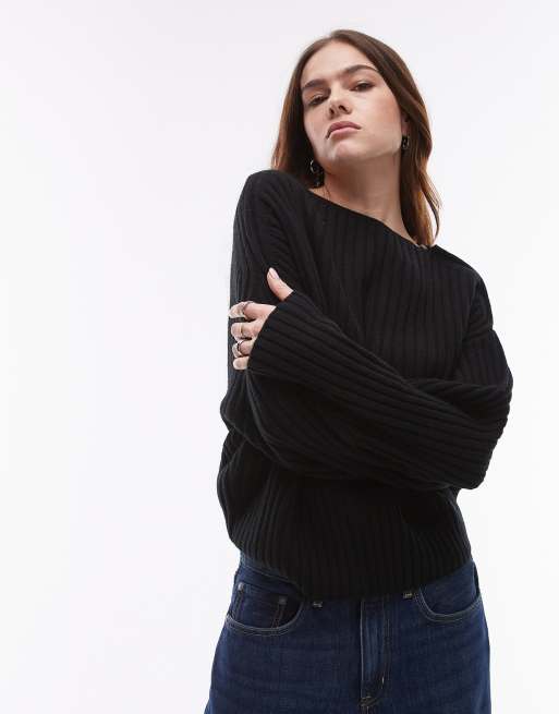 ARKET wool knitted sweater with asymmetric off shoulder in black