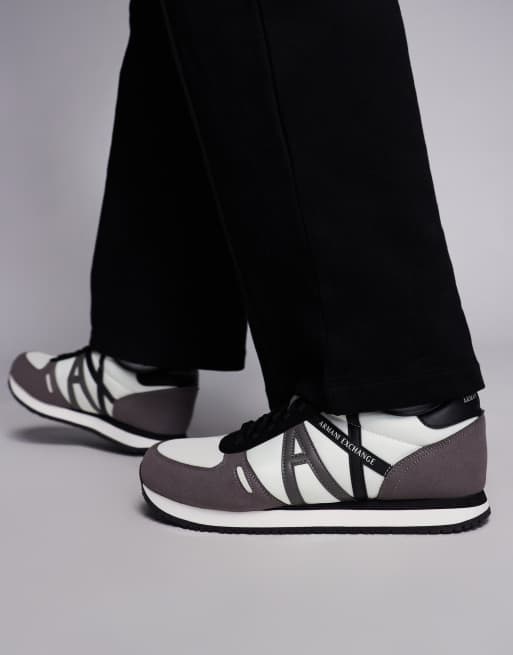 Armani Exchange logo runner sneakers in grey and off white