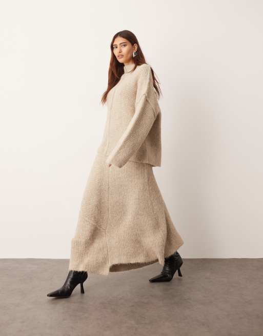 ARRANGE constrast stitch knit exposed seam midi skirt in taupe (part of a set)
