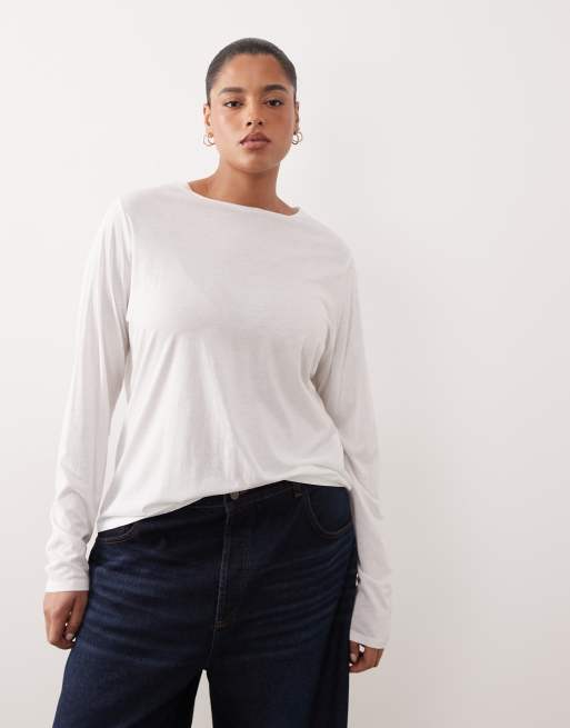 ARRANGE Curve seam detail long sleeve jersey top in white