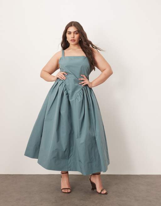 ARRANGE Curve strappy ruched bodice full skirt maxi dress in dusky blue