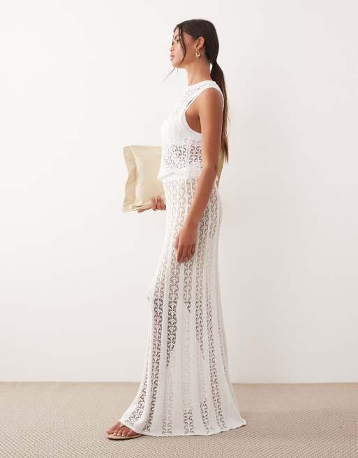 ARRANGE open knit maxi skirt in white