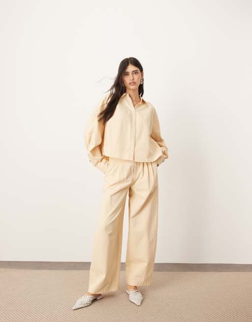 ARRANGE structured boxy shirt and wide leg barrel pants in buttermilk