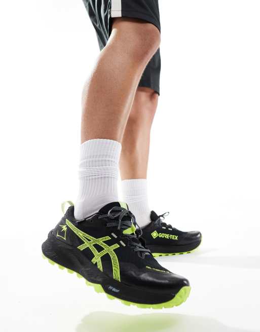 Asics Gel-Trabuco 12 GTX waterproof trail running trainers in black and neon yellow