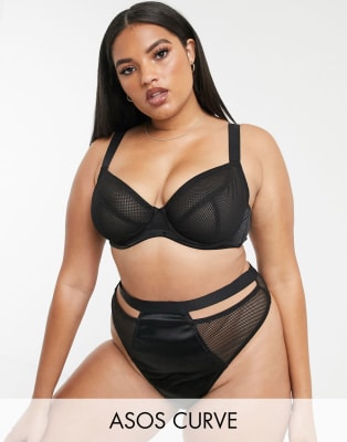 ASOS DESIGN Curve Adila fishnet metallic underwire bra and thong